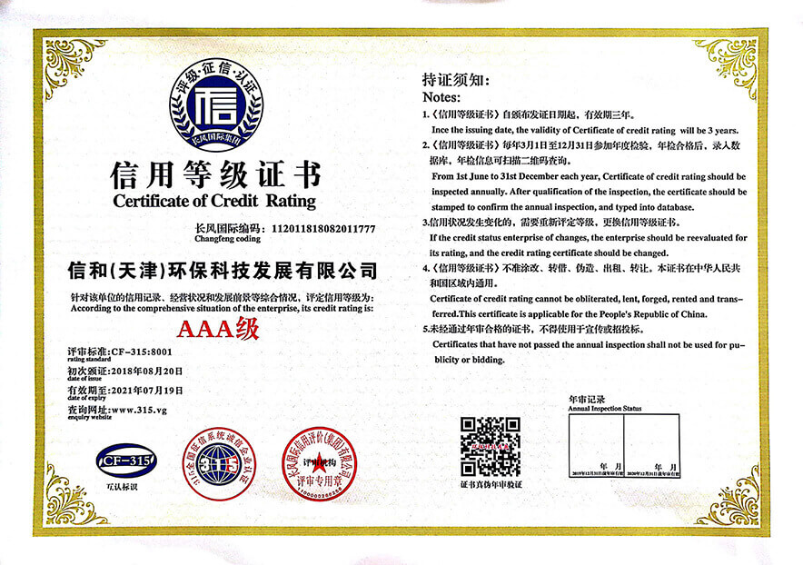 “質量就是生命”。信和重質量、守信用,被中國誠信品牌萬里行推薦“誠信示范單位”、“AAA資信等級”、“AAA級誠信經營示范單位”、“誠信經理人榮譽證書”、“誠信企業家榮譽證書”、“中國產品質量放心達標企業”、“誠信品牌聯盟會員單位”、“中國質量誠信AAA級品牌企業”、“中國百強優秀企業”、“節能環保推廣產品”、“全國科技創新企業”等榮譽稱號。